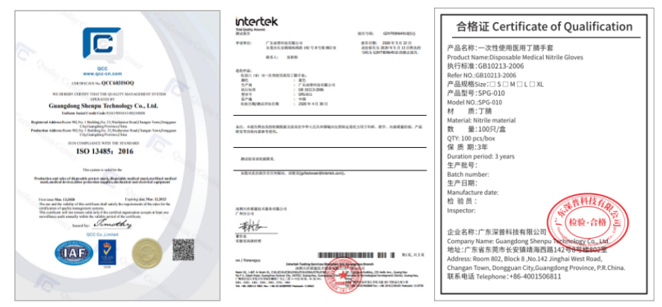 Disposable Medical Nitrile כְּפָפָהs certificate: