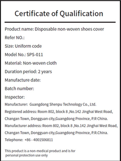 3. Disposable נעליים לא ארוג CoverrParameter מפרטים